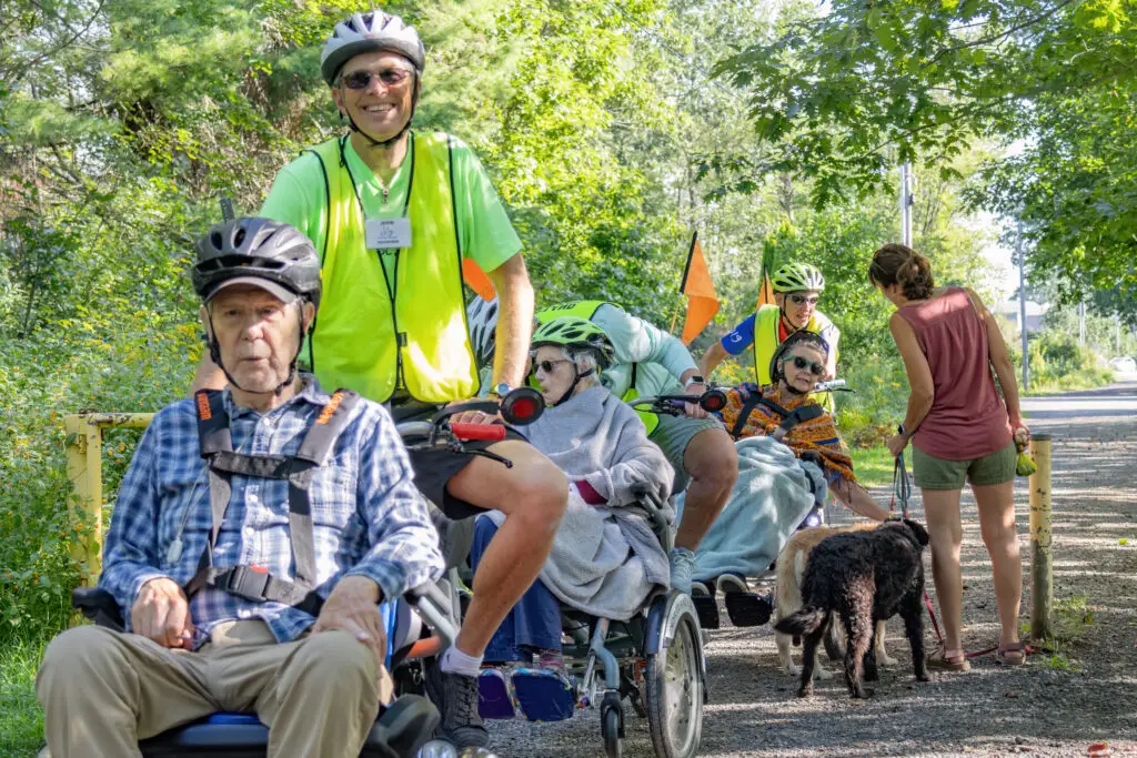 In May, Toby Bartlett spent some time with our long-time volunteer, John Grew, to write an article about Portland Wheelers for Scarborough Living Magazine. We have a number of ride partner locations in Scarborough. You’ll see us riding the Eastern Trail with folks from Scarborough Terrace or The Enclave. You might spot us at The Downs with wheelers from Maine Veterans’ Homes or Scarborough Public Schools. We roll past Higgins Beach with our friends at Piper Shores, and we roll through neighborhoods near Pine Point Center. We are quite visible in Scarborough! Toby writes about sustainability, so there was a bit of that in the article, but what really came through was kindness and connection.