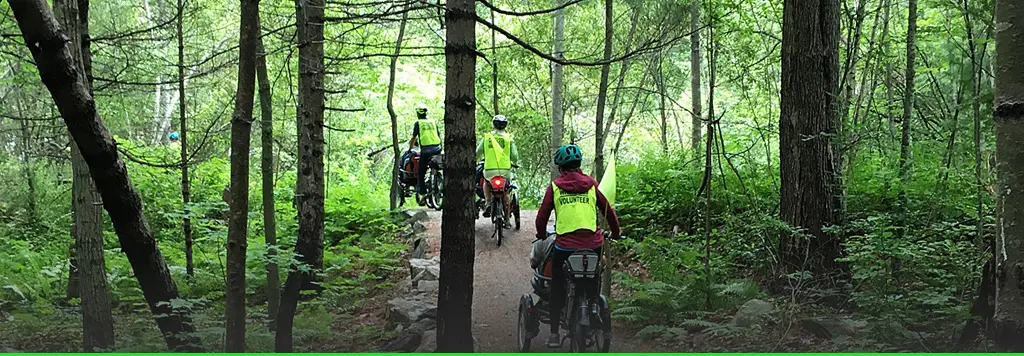 We have a fleet of 11 electric assist Van Raam Opair wheelchair bikes (the trikes), and two all-electric E-Transit vans that carry the trikes and all ride supplies to ride locations.