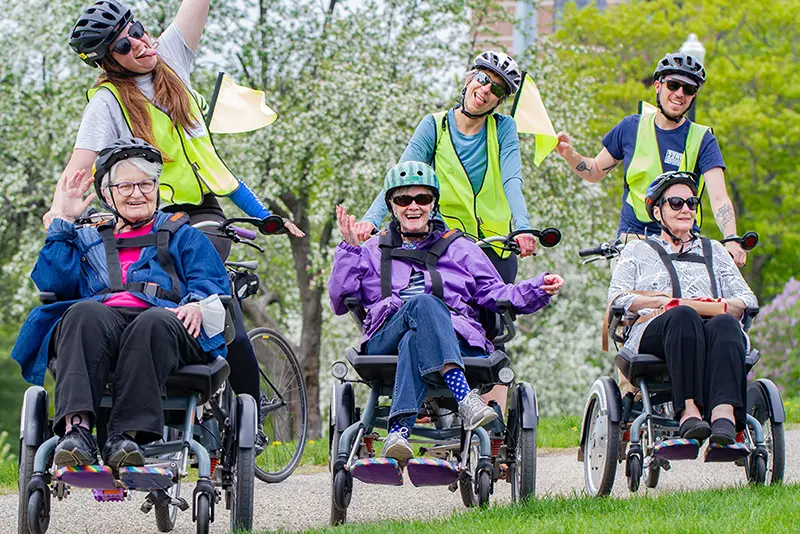 Our volunteers pedal the trikes and spend thousands of hours annually in conversation and friendship with our wheelers.