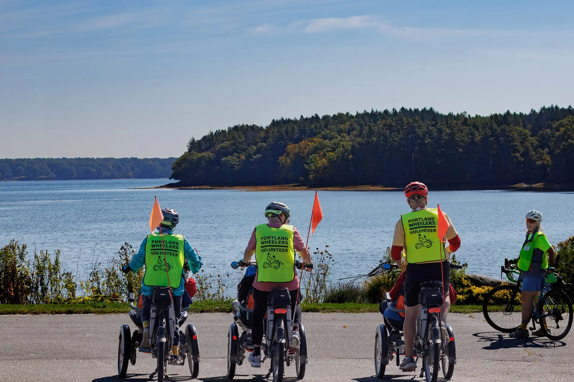 On-bike volunteers are trained to be pilots and safeties. They become confident and skilled at not only operating our trikes safely but at interacting with and enriching the lives of our wheelers, providing essential connection and friendship, all while sharing in the joy of outdoor recreation.